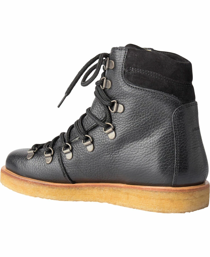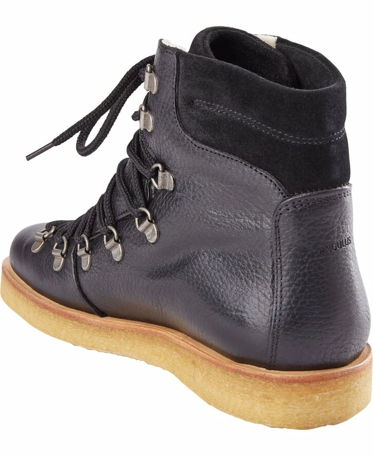 Foret snørestøvle fra Angulus i en lækker kombination af glatskind og ruskind. Støvlen er helt enkel i modellen med rund snude, højt skaft samt syningsdetaljer på hælen. En rigtig cool vinterstøvle til den kommende sæson.