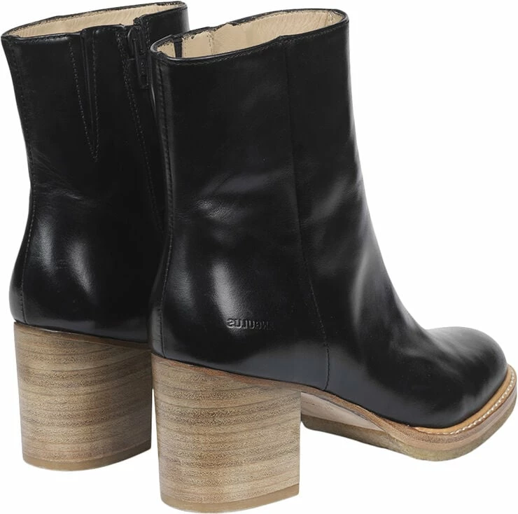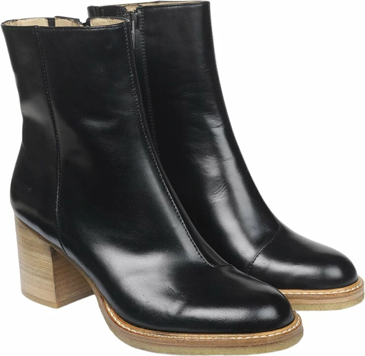 Enkel støvlet med lynlås, kombineret blokhæl og rågummisål under for-sålen som giver god komfort. Kan styles op og ned efter behov. Foer og dæksål i blødt skind. Produceret i 100 % skind i tråd med