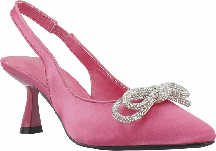 Elegant pump med et satinbelagt ydre same et smuk sløjfedetalje i front. Hælhøjde: 6 cm. Perfekt til festlige begivenheder.