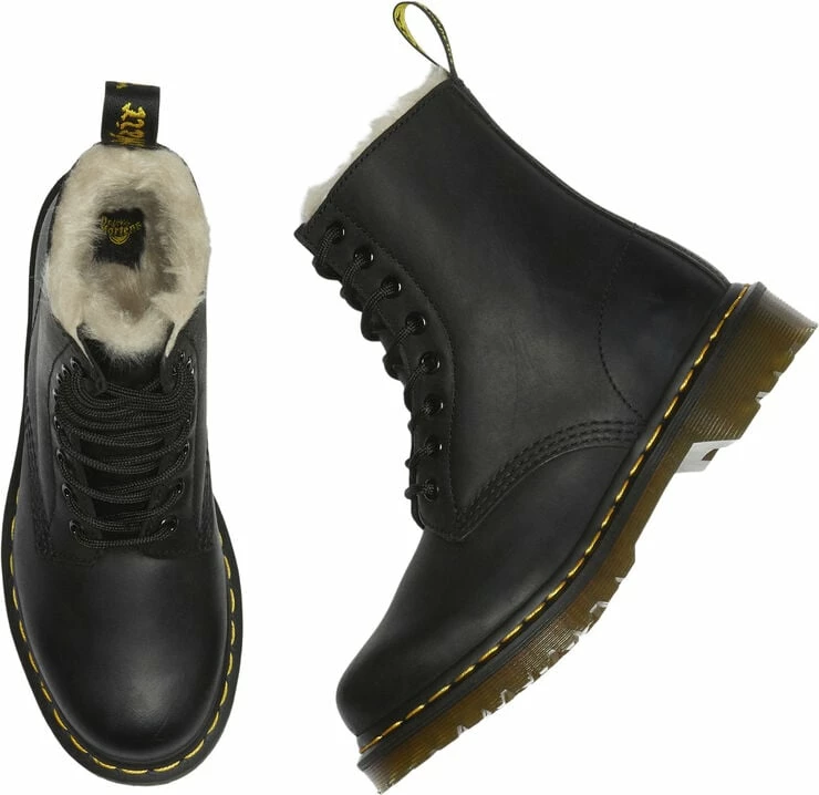 Den ikoniske Dr. Martens-støvle med for i det smukkeste, olierede skind. Støvlen er enkel i modellen med snørelukning på fronten samt de ikoniske stikninger langs den grove sål, der matcher hælstroppen. En tidløs støvle af den bedste kvalitet.