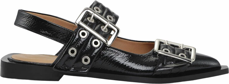 Wide Welt Buckle Ballerinaer med firkantet blokhæl, bred kant, slingback-stropper og justerbare spændestropper.