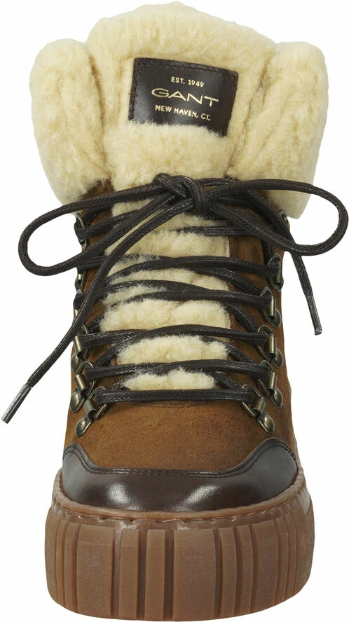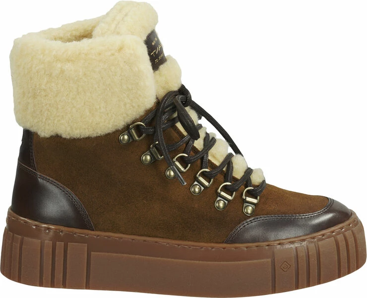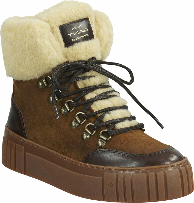The perfect winter lace-up boot for cozy warm feet, even on long walks. The upper is a mix of high-quality leather and shearling with fashionable lacing and GANT logo. With textile lining and removable, leather-covered insole made from GANT Re-Foam, a recovery foam made from recycled material. With the purchase of this shoe you support sustainable leather production.