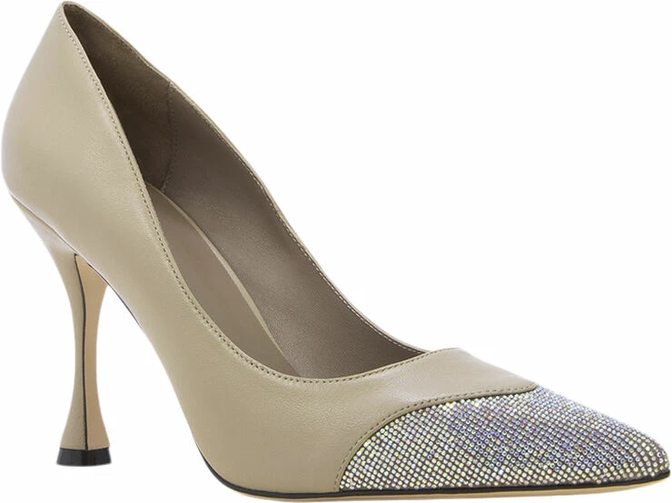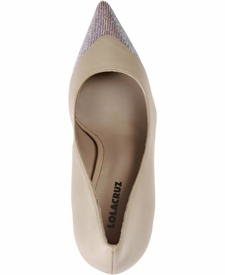 Stilet fra Lola Cruz i en lækker læderkvalitet med de fineste sten på skoens spidse snude. Derudover er den enkel i modellen med en rund udskæring på fronten samt en slank, let kurvet hæl.