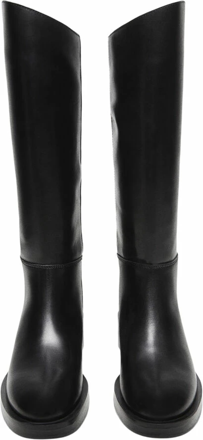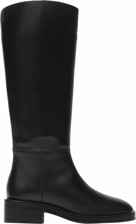 100% bovine leather, rounded toe, tall leg, flat, inner lining.