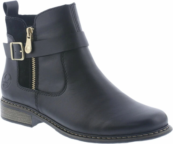 Skøn skindstøvle fra Rieker med funktionel lynlås på indersiden , med en pynterem . Den er uforet , så kan bruges både til hverdag og fest.